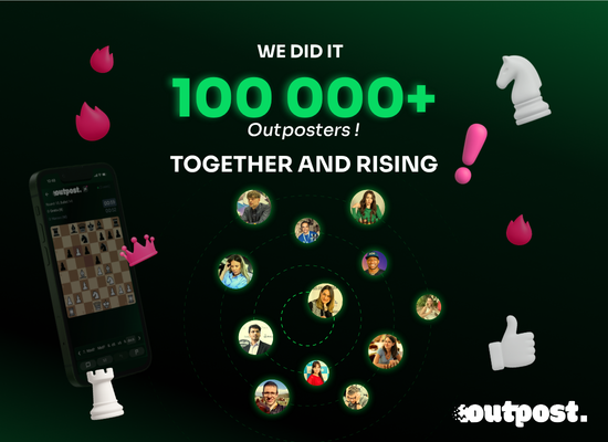 Outpost Chess celebrates reaching 100,000 users, highlighting a global community of players, coaches, and organizers, real success stories, ambassador contributions, and the platform’s vision of learning chess with AI coach.